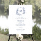 Cartel de bienvenida del Boda del Monograma Escudo Rosas Elegantes Florales. Cartel de bienvenida del Boda floral azul real. Escudo del Boda bucal vintage