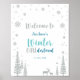Este cartel de bienvenida de 1er cumpleaños de este maravilloso país invernal presenta bonitos copos de nieve y la tipografía "Tierra de invierno" en purpurina plateado, menta y verde verde azulado. ¡Perfecto para una fiesta de primer cumpleaños de invierno para tu pequeño! En mi tienda BaraBomDesign hay disponibles invitaciones y suministros para fiestas coincidentes.