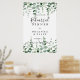 Este cartel de bienvenida para el ensayo de eucalipto es perfecto para un ensayo boda moderno. El diseño presenta una acuarela de hojas y ramas de eucaliptos botánicos elegantes dibujadas a mano.