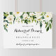 Este ensayo horizontal floral de bienvenida es perfecto para un ensayo rústico boda. El diseño presenta elegantes peonías blancas acuarelas con follaje verde.