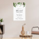 Este cartel de bienvenida de un ensayo dorado de vegetación tropical es perfecto para un ensayo boda moderno. El diseño se compone de acuarelas pintadas a mano de oro y palmeras verdes y hojas de plátano con flores rosas cuidadosamente dispuestas en bonitos ramos.
