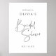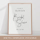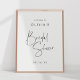 Bienvenidos a su ducha de novia, ducha de bebé, fiesta de compromiso, boda o evento especial con este elegante signo mínimo, disponible como descarga digital o impreso profesionalmente. El diseño presenta "bienvenidos a la ducha de novia de [name]" con la fecha bajo, en un suave guión manuscrito negro y con letras sans serif en un fondo blanco y fresco. Coordina con nuestras Minimalistas colecciones Script de ducha de novia.