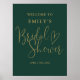 Este elegante signo de bienvenida de moda verde esmeralda y dorado con ducha de novia se puede personalizar con tu nombre y fecha especial. Diseñado por Thisisnotme©