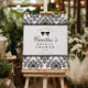Signo de bienvenida de la ducha de moda negra de Damask Bow Bridal