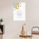 Este sofisticado signo de la ducha de novia, con su diseño floral de moda y sus delicadas flores de color amarillo acuático, le ayudará a recibir a los visitantes con estilo. Ideal para fiestas de jardín femeninas, brunch y temas de burbujas y brunch lúcido. La caligrafía elegante y los acentos acuáticos crean un ambiente cálido y sofisticado para cualquier celebración floral de una ducha de novias.