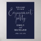 Este signo de bienvenida de compromiso de escritura azul marino elegante puede ser personalizado con todos sus nombres y fecha especial. Diseñado por Thisisnotme©