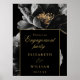Este elegante cartel de bienvenida de fiesta de compromiso floral en blanco y negro y dorado se puede personalizar con su información en la tipografía moderna. Diseñado por Thisisnotme©