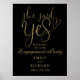 Este elegante guión en negro y oro "Ella dijo que sí" el signo de bienvenida de compromiso puede ser personalizado con todos sus nombres y fecha especial. Diseñado por Thisisnotme©