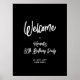 Celebre su día especial con este poster elegante y sencillo de señas de bienvenida de 80 años. Este diseño incluye un guión de broche de moda "Bienvenido a la fiesta de cumpleaños número 80 de tu nombre" en blanco y negro. Puede personalizar el texto a cualquier edad o evento. Hay más diseños de fiestas Bday disponibles en mi tienda BaraBomDesign.