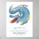 Cartel de bienvenida de la fiesta de cumpleaños temática del cocodrilo lindo con un ilustracion de un cocodrilo azul con un gorra fiesta con el texto "Chomp, chomp." Perfecto para el fiesta de un niño en verano.