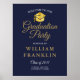 Un elegante cartel de bienvenida para una fiesta de graduación con detalles de tu graduación en una tipografía de moda sobre un fondo azul marino. Diseñado por Thisisnotme©