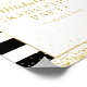 Un diseño elegante con un falso purpurina de oro sobre un fondo de rayas blancas y negras con bonitas flores borgoñas y rubias. Puede personalizar el texto y los colores en este signo de bienvenida de la fiesta de graduación.