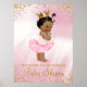 Señal de bienvenida de la ducha de bebé de la princesa afroamericana africana con adorable bebé africana usando un tutu rosado de bonito y perlas en un satén rosado y fondo purpurina de oro. Este cartel de bienvenida a la ducha de bebé de la princesa africana se personaliza fácilmente para tu evento simplemente añadiendo tus detalles. También puede quitar el fondo satinado y añadir el color que desee.