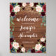 Signo de bienvenida de Marsala Burgundy Wood Floral Boda