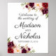 Póster Signo de bienvenida de Marsala y Boda floral rosa