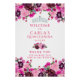Signo de bienvenida Magenta Floral Quinceanera. Este hermoso cartel de quinceañera es creado con flores rosadas, magenta y violeta acentuadas con una corona de diamante. Este diseño de quinceañera floral es perfecto para cualquier quinceañera, hay artículos adicionales disponibles que coordinan.