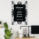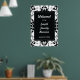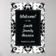 Signo de bienvenida familiar Reunión con fondo de damasco blanco y negro. Personalizable completo de texto para personalizar para su evento familiar. El poster puede colgarse en la pared o en la puerta, o montarse a bordo o a caballete a la entrada de su fiesta.