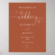 Este elegante signo de bienvenida de boda de escritura de corazón de terracota puede ser personalizado con su información en tipografía de moda. Diseñado por Thisisnotme©