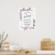 Este bonito cartel de bienvenida boda presenta un ribete de lilas acuáticas pintadas a mano en tonos violeta. El texto presenta una elegante caligrafía de escritura con espacio para los nombres de la pareja, la fecha boda y un breve agradecimiento. Una forma maravillosa de dar la bienvenida a sus huéspedes.