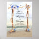 Flores azules, arco de playa y aves marinas boda poster de señal de bienvenida