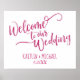 Bienvenido a sus huéspedes bodas con estilo con este divertido e informal cartel de "Bienvenido a nuestro Boda". Personaliza con tus nombres y fecha. Esta se coloca en magenta / rosa caliente, pero puede cambiar el color del diseño sólo cambiando el color de fondo. Tamaño: 16 x 20
