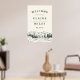 Bienvenido a su boda rústico, boscoso o montañés con nuestro poster Mountain Sketch, que cuenta con un ilustracion boscoso de picos, pinos y un río fluido. Agregue sus nombres, fecha de boda y texto de bienvenida personalizado usando los campos proporcionados.