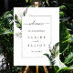 Póster Signo de bienvenida del Boda verde follaje tropica