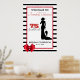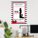 Celebra tu evento de cumpleaños 75 y SENSACIONAL, con tus invitados, con este moderno y elegante cartel de bienvenida. El diseño femenino de la silueta se complementa con un patrón de rayas negras y blancas en el fondo junto con un arco de satén rojo. ¡Disfrútalo!