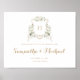 Signo De Bienvenida Del Monograma Del Escudo De Hidrangea Blanca Floral. Signo de bienvenida de Boda de guión dorado. Escudo Boda Poster de hidrangea blanca Flores verdes