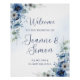 Póster Signo de bienvenida editable Boda Dusty Blue Flora