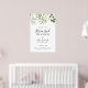 Este sencillo cartel de bienvenida con un ensayo de eucalipto es perfecto para un ensayo boda moderno. El diseño presenta hermosas hojas de eucalipto pintadas a mano de forma artística, dispuestas en formas geométricas, inspirando la belleza natural.