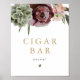 Este boho cartel de bar de puros cuenta con ricos flores de borgoña y deliciosos adornos. Edite la mayoría de las palabras para satisfacer las necesidades de su evento. Este letrero es perfecto para su desierto bohemio o evento temático de otoño.
