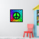 Vidrio digital manchado en colores arcoiris con un signo de paz.