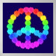 Poster azul oscuro con un diseño de símbolo de paz de flor arcoiris.