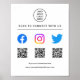 Una señal de negocio de redes sociales profesional moderna con un código QR para marketing, networking y marca personal. Puedes cambiar la fuente, tamaño de fuente, color de fuente, color de fondo y reposicionar el texto utilizando la Herramienta de Diseño. El diseño es tuyo para personalizar como desees. Puedes eliminar la información que no desees. Reemplaza la imagen con una foto cuadrada de tu logotipo. Puedes ajustar el tamaño del logotipo utilizando la opción Escala en la Herramienta de Diseño.