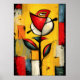 A symbolic abstract rose rendered through bold geometry and expressive color contrasts. This contemporary abstract expressionist artwork explores growth, tension, and inner balance, transforming a floral form into a powerful modern statement piece for curated interiors and art collections.