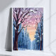 Póster Silent Snowfall Winter Forest Watercolor Painting