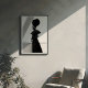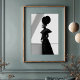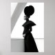 Hacer una declaración sorprendente con esta cautivadora impresión de arte en blanco y negro, una exhibición magistral de moda vanguardista y arte arquitectónico. Este retrato de perfil retrata a una mujer de elegancia aguda, coronada por un extraordinario gorra negro circular de múltiples capas que forma una silueta dramática y escultórica contra el brillante fondo blanco. Vestida con un vestido negro elegante y de largo alcance con detalles de hombro y mangas largas muy definidos, su atuendo minimalista resalta su forma refinada. Su piel oscura crea un contraste hipnotizante frente al inmaculado entorno blanco, que está salpicado por un elemento arquitectónico diagonal, añadiendo líneas dinámicas y profundidad a la composición. Con manos elegantemente apretadas, esta obra de arte encarna una elegancia segura, serena e innegable de moda. Perfecto para espacios vivos modernos, estudios de moda o cualquier decoración que busque un toque de sofisticación única, arte audaz y una narrativa visual verdaderamente inolvidable.