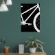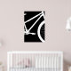 Este poster de estilo contemporáneo tiene una silueta blanca de frente de bicicleta sobre un fondo negro que da un aspecto geométrico y moderno. El color de fondo se puede cambiar fácilmente haciendo clic en "Editar diseño". Esta impresión se muestra en un marco blanco (no incluido).