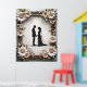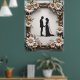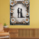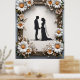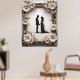 Silueta elegante de una pareja boda tomada de la mano, enmarcada con un borde decorativo adornado con hermosas mareas. Perfecto para temas de amor, bodas y celebraciones románticas.