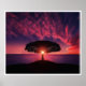 Esta imagen evocadora capta la impresionante belleza de una puesta de sol. Un árbol solitario se erige en silueta frente a un fuego de fuego cielo en llamas con vibrantes tonos de naranja, rosa y morado. El sol, una especie de araña, asoma a través de las ramas y respira cálidamente el paisaje circundante. Esta imagen evoca una sensación de tranquilidad y asombro, invitando a los espectadores a hacer una pausa y apreciar la belleza del siempre cambiante espectáculo de la naturaleza.