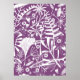 Siluetas botánicas florales de bonito de naturaleza, follaje blanco, hojas y flores sobre un fondo morado.