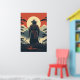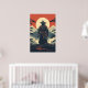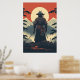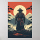 Silhouette de un Guerrero Samurai con la luna, las montañas y los árboles.