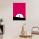 Poster con un tipo zombie genial. Combinación de colores vivos rosa y negro en negrita. Una silueta zombie con brazos extendidos en la caza de cerebros. Una gran luna blanca se ilumina por detrás.