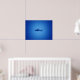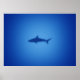 Silhouette de tiburón borrosa sobre un fondo de agua azul con un resplandor azul claro