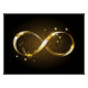Oro, símbolo de infinito de joyas con estrellas doradas sobre fondo negro. Diseño con estrella dorada.