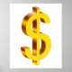 Un símbolo 3d en oro metálico sobre fondo blanco puro.