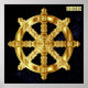 El Budismo y el Hinduismo de la Rueda Dharma de Oro simbolizan el principio del orden cósmico y la enseñanza o religión del Buda.