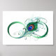 El símbolo del infinito con una pluma de pavo real brillante, verde y artística sobre un fondo blanco. Estilo tatuaje.