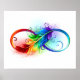 Símbolo de infinito dibujado artísticamente con una hermosa pluma arco iris sobre fondo blanco. Estilo tatuaje.